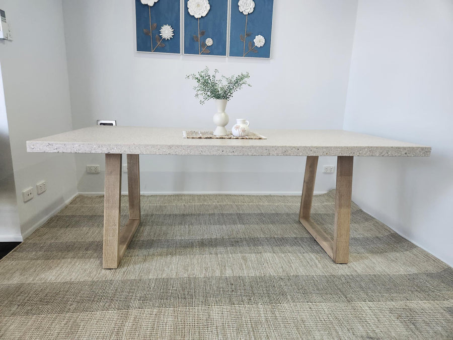 2m eTerrazzo Dining Table | Ivory Coast with standard Ivory wash Acacia legs